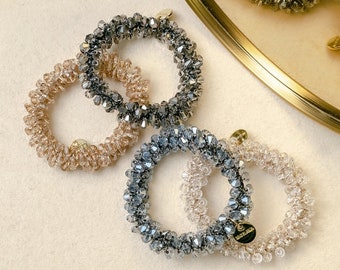Crystal Beaded Hair Scrunchies Crystal Beads Hair Tie Pony Etsy
